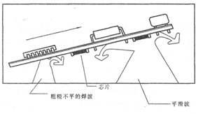 擾流波的作用:SMT元件焊接及防止漏焊,它保證穿過電路板的焊料分布適當(dāng)。焊料以較高速通過狹縫滲入,從而透入窄小間隙。噴射方向與電路板進(jìn)行方向相同。對(duì)SMT元件而言,擾流波基本能完成焊接。但對(duì)通孔元件而言,擾流波本身并不能適當(dāng)焊接元件,它給焊點(diǎn)上留下不平整和過剩的焊料,因此需要第二個(gè)波---平流波。